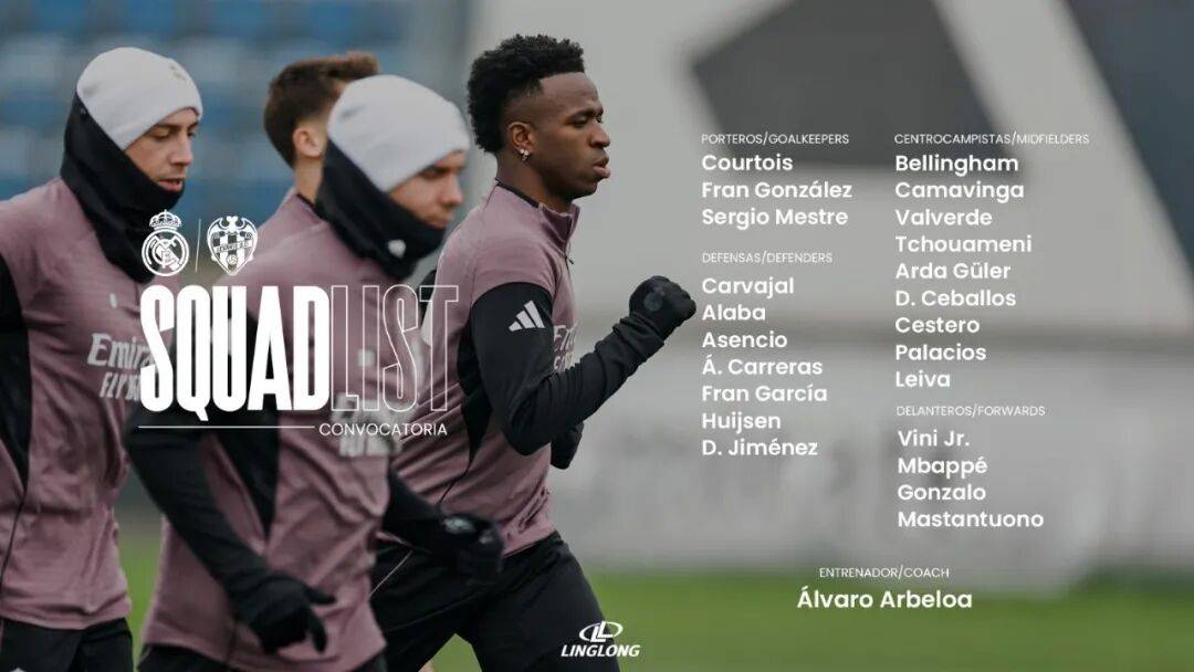 1月17日21:00,#西甲 联赛第二十轮,排名第二的#皇家马德里 主场迎战倒数第二的#莱万特。